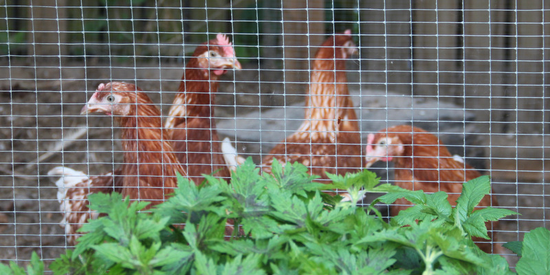 Så man må indrette sig med hegn eller små stakitter, mens planterne vokser til. Du kan se her, hvordan jeg gør. Jeg har hørt om folk, der nøjes med at lukke hønsene ud i haverne i marts og april, og så igen i oktober og hele vinterhalvåret. De kan også sagtens få lidt ud af at spankulere rundt i en (fritskrabet) sneklædt vinterhave i frostgrader, især hvis du smider noget grønkål til dem eller dyrker kattegræs.