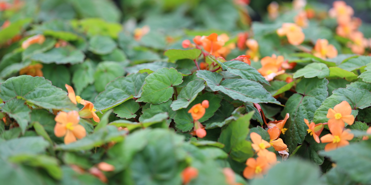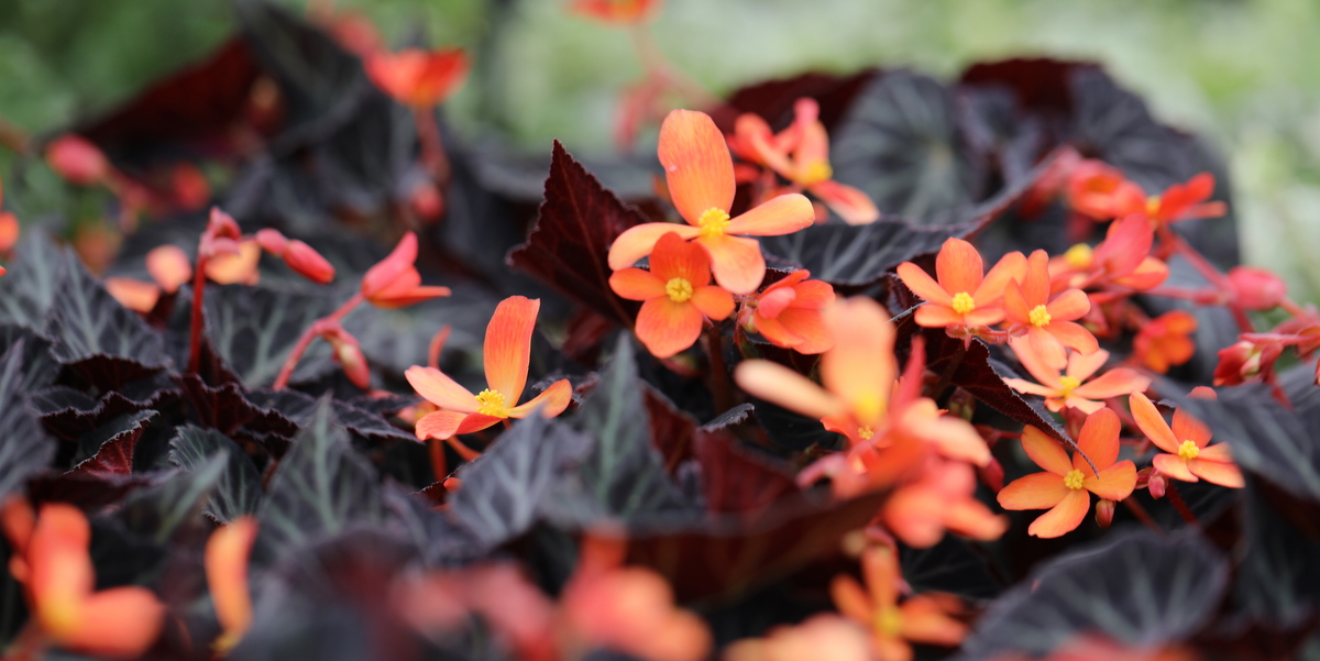 Begonia har i mange år været dømt lidt ude som en af fortidens udplantningsplanter. Men måske skal man igen til at kigge den vej. Se fx denne lækre orange blomstring med næsten sorte blade!